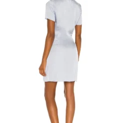 SKU: Shirt Dress SOSR-WD166 Categories: Dresses, Shirt Dress Tags: Baby Blue Dresses, Icy Blue, Mini Dresses, Ruching, Satin, Shades of Blue, Shirt Dress Dresses, Short Sleeve Dresses