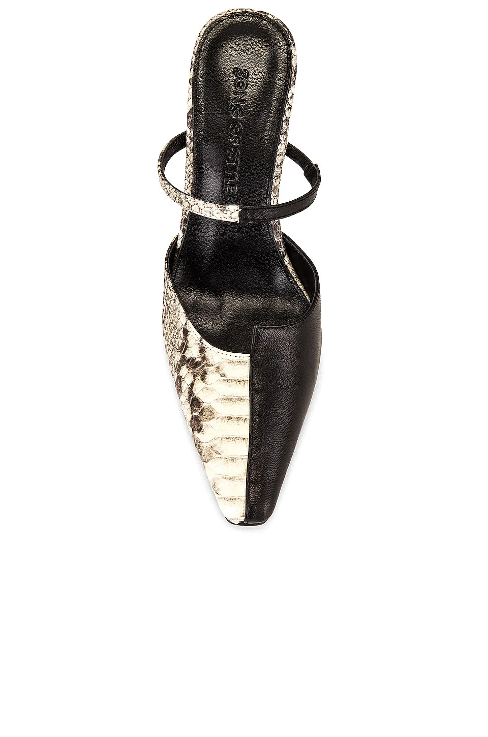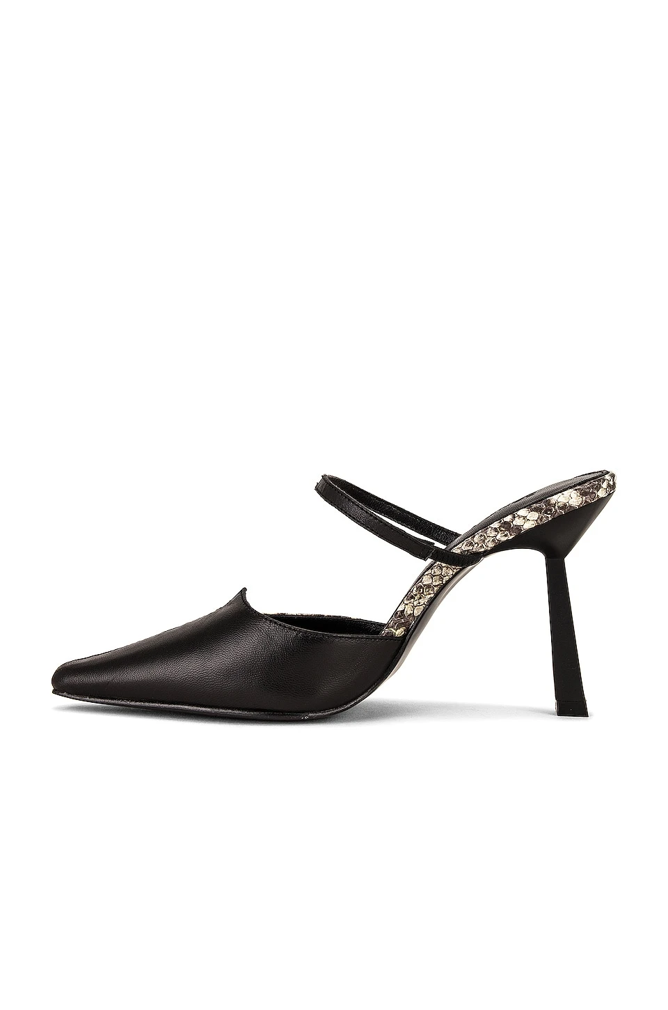 - Asymmetrical vamp with pointed toe