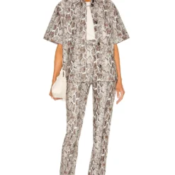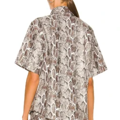 SKU: Short Sleeve SOSR-WS164 Categories: Short Sleeve, Tops Tags: Animal Print, Brown Tops, Button Up Shirts Tops, Gray Snake, Leather Tops, Matching Separates, Short Sleeve Tops