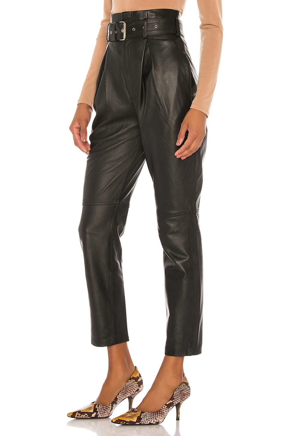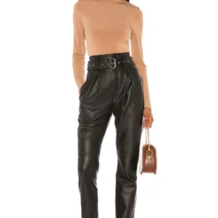 SKU: Black SOSR-WP15 Categories: Black, Pants Tags: Black, Black Pants, High Waisted Pants, Leather, Leather Pants, Paperbag Waist Pants, Pleats, Tailored Pants